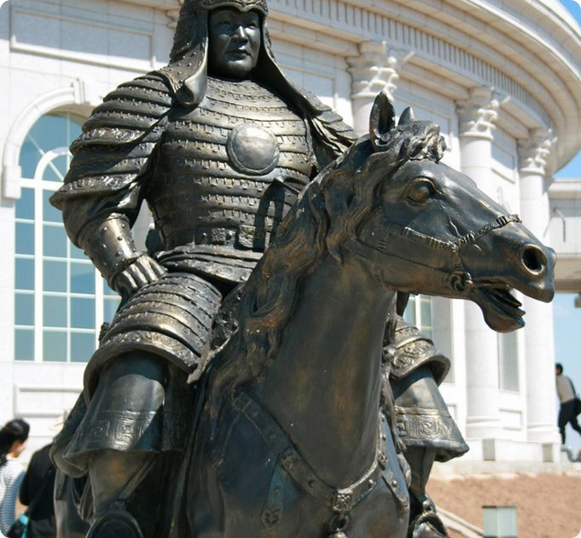 Symbolism: The monument is rich with meaning. The statue faces east—toward Genghis Khan’s birthplace—and stands on a 10-meter base encircled by 36 columns, each representing a Mongolian king from the great Chinggis Khan to Ligden Khan. This architectural choice connects the founder to the long lineage of rulers who shaped the nation's history.