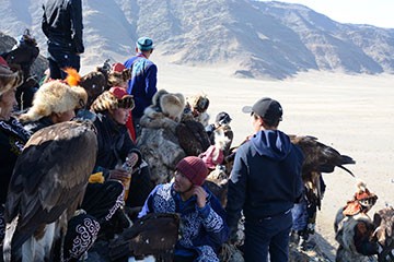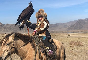 In the morning, take a flight to Ulgii (~3 hours), the capital of Bayan-Ulgii, Mongolia’s westernmost province. After lunch in Ulgii town, we will take a drive to a local eagle hunter's family and golden eagle.