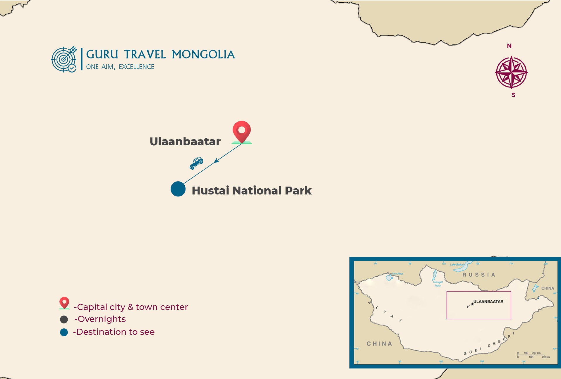This morning you will meet with your guide and driver at your location and you will first visit Zaisan Memorial Hill which is a popular tourist attraction and one of the highlights of Ulan Baatar because of the fantastic views it offers over the city. Then let us take you to the world’s last wild horse (never domesticated), Takhi in Hustai National Park with open steppe, birch forest, and mountains. Upon arrival at Hustai, visit small Ger information center- which shows some detailed information about the last truly wild horses.