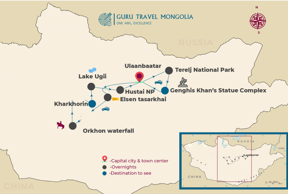 This morning, depart to Terelj National Park, the nearest and the most visited national park. On the way, we will visit “Genghis Khan Statue Complex” which is currently the biggest (40m high) equestrian statue in the world. You can go inside and enjoy museums, souvenir shops. Then you will explore the national park and see Turtle Rock - the symbol of the National Park. You can climb on the rock if you want, Also, visit the Ariyabal meditation temple - Once you reach the temple and stand on the top of hill, you will be amused by the whole park view. Check in one of the best tourist camps and have lunch. Rest of the day is free time for you to be on your own.