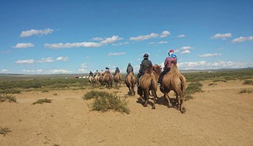 At 8 am, you will meet with your private tour guide and driver at your hotel and start your trip to Mini Gobi Elsen Tasarkhai - the beautiful sand dunes are covered with rare bushes shrubs such as willow, elm, dogwood, and a small forest near a river. It is very unique to see this type of ecosystem, a combination of mountains, forests, steppes, and sand dunes in one location. Upon arrival, you will visit the camel herder family for lunch and explore their unique nomadic lifestyle and then ride a camel to discover this magnificent place on camelback.
