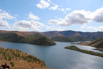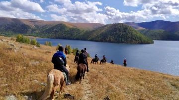 On this day, you will continue to ride to a place where five of the eight lakes can be seen from. At that higher altitude, you will catch spectacular, panoramic views over this wild terrain. After lunch, reach Shireet Lake, the biggest lake of Naiman Nuur which has a narrow peninsula going into it.