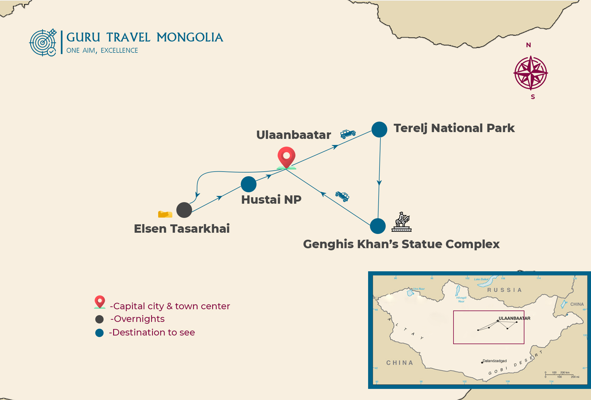 In the morning, we will return to Ulaanbaatar. On the way visit the “Genghis Khan Statue Complex” which is currently the biggest (40m high) equestrian statue in the world.