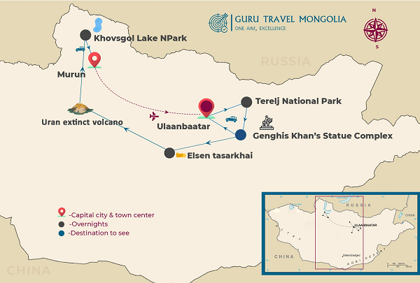 This morning fly to Ulaanbaatar. Upon land at the airport, we will depart for Terelj National Parkd. the nearest and the most breathtaking sightseeing from the capital Ulaanbaatar. On the way visit “Genghis Khan Statue Complex” which is currently the biggest (40m high) equestrian statue in the world. You can go inside and enjoy museums, souvenir shops. Following lunch, we will explore the national park and see Turtle Rock - the symbol of the National Park. You can climb on the rock if you want, Also, visit the Ariyabal meditation temple - Once you reach the temple and stand on the top of hill, you will be amused by the whole park view. Dinner and overnight at the tourist camp in the national park.