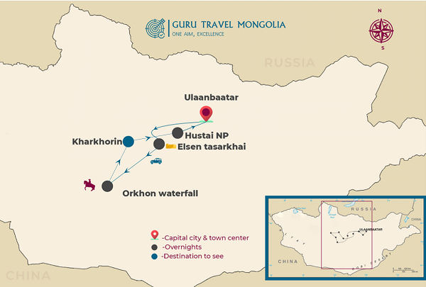 This morning, drive to the Hustai National Park, where world’s last wild horse (never domesticated), Takhi inhabit. Upon arrival at Khustai National Park, we begin with a visit to the small Information Center. Here, you'll learn about the park’s conservation efforts, especially focused on the Takhi (Przewalski's horse), the last truly wild horse species. After lunch, we head out for a short drive followed by a walk through the park, where you can see the Takhi horses in their natural habitat. This is a rare and incredible opportunity to observe these magnificent wild horses roaming freely in the wild. As we explore the park, keep an eye out for other wildlife, such as foxes, roe deer, eagles… in the evening return to Ulaanbaatar.