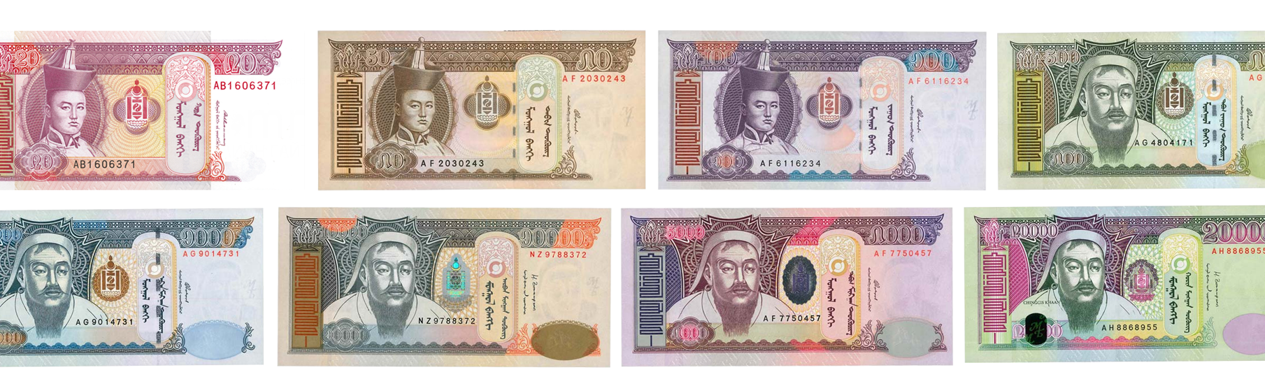 The higher-value notes feature a portrait of Genghis Khan (Chinggis Khaan). You will use these for 90% of your purchases.