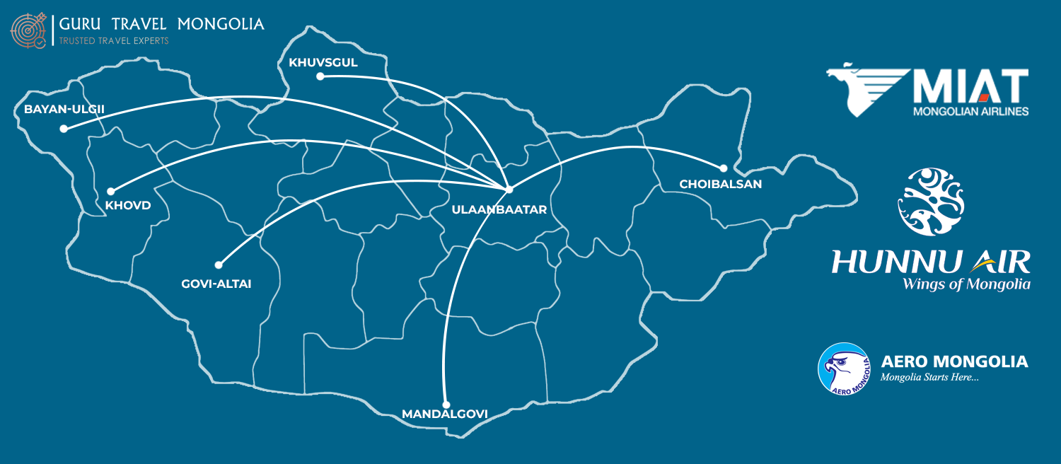 Most domestic flights start from the capital, Ulaanbaatar (UBN), and connect to key provincial (aimag) centers.