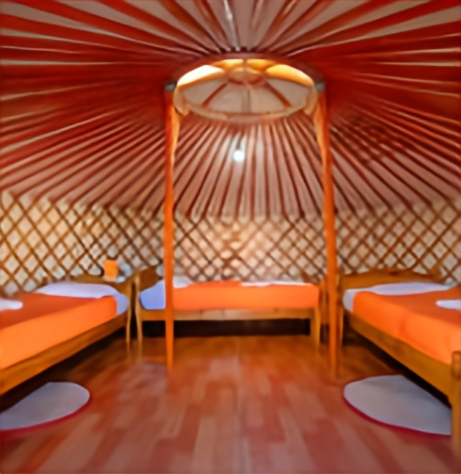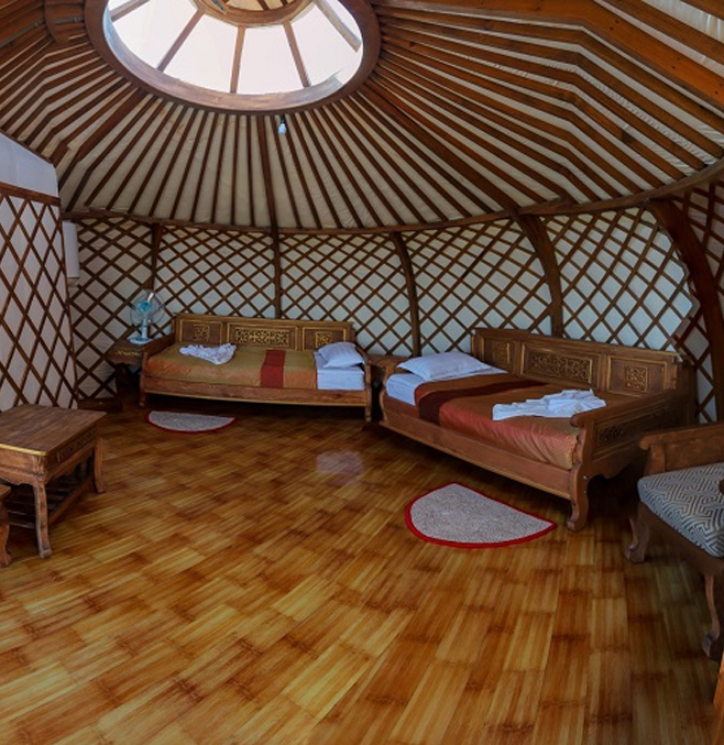 Inside each guest Ger, you will usually find two to four single beds, a central stove for heating, and simple but functional furniture such as a table and chairs. Guests can choose between different arrangements: twin, double, triple, or family-sized Gers.